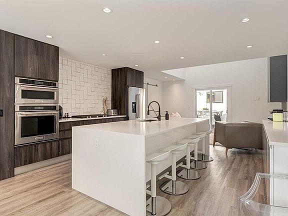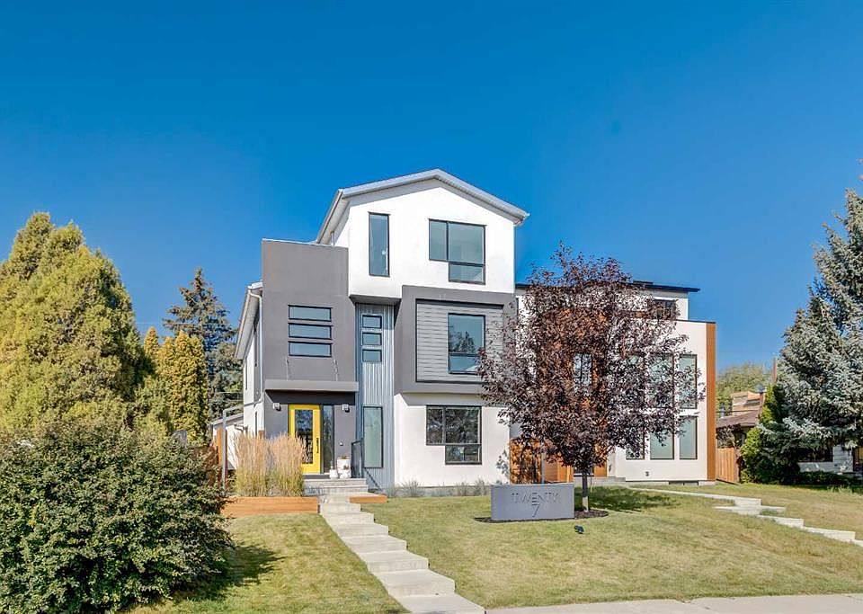 The house with the yellow door… we know you’ve been wondering about this one. Don’t miss the incredible chance to own this modern beauty in the community of Highwood. Set on an extra-wide lot and offering over 2,900 square feet spanning 3 levels and developed basement, the home is thoughtfully designed to maximize light and space. Featuring clean linear lines, neutral tones, and expansive windows that create a calm, airy ambiance, the home features a floor plan that flows effortlessly with sleek finishes, tall ceilings and two dramatic open-to-below spaces illuminated by four skylights. The kitchen showcases understated elegance with functional luxury in the form of stainless steel appliances, gas range, custom soft-close Italian cabinetry and sparkling white quartz countertops with waterfall island. The living space showcases a unique BioFlame fireplace and leads to a 600 square foot deck and professionally landscaped west facing backyard. Upstairs on the second floor, there are 3 bedrooms, one offering a private ensuite complete with heated floors. The abundance of custom built-ins ensures seamless organization. The 3rd floor primary suite feels like a serene spa retreat. The ensuite features in-floor heat, oversized shower, and neutral finishes. The private balcony overlooks downtown views — perfect for watching fireworks in quiet comfort. The legal 1-bedroom/bathroom basement suite is equally refined, featuring a completely separated side entrance, a custom Italian kitchen, radiant floor heating, floating insulated main floor for soundproofing, oversized shower and spacious closet/storage. With current tenants keen to stay, it’s an effortless income generator or multi-generational space. Additional highlights include oversized 22’ x 24’ insulated garage with 220V EV charging, custom window coverings and USB outlets throughout, high efficiency furnace & hot water tank, roughed-in A/C, and prime east-facing front on a quiet cul-de-sac across from a lush park. Surrounded by mature trees and top-rated schools (Mandarin, Spanish, French, Catholic, Public, and Foundations for the Future), Highwood is a hidden gem ~ a family-friendly community that grows with you. Confederation Park, outdoor rinks, golf courses, pools, and playgrounds are all nearby, while downtown, SAIT, U of C, and Kensington are just minutes away. With bike paths, major bus routes, and the future Green Line LRT station within walking distance, convenience meets tranquility. A rare opportunity to own a home where peaceful minimalism, design sophistication, and inner-city living intersect.