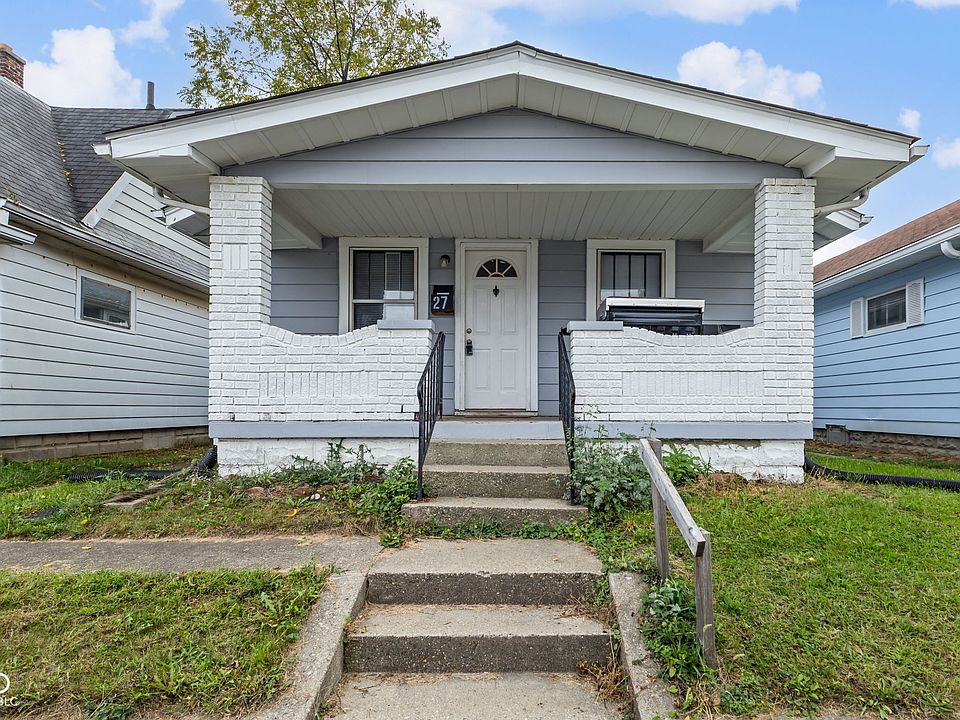 Nestled in the old Southside Historic neighborhood, this adorable 3-bedroom, 1-bathroom home has 1,025 square feet of finished space on the main level, plus a large unfinished basement. Elegant doorway arches and built-ins add a touch of sophistication from the 1930s, and the refinished hardwood floors add charm and warmth throughout. The floor plan features two LARGE living areas (virtually staged as a family room and formal dining room), but the heart of this home is the spacious eat-in kitchen, featuring painted cabinets with butcher-block look countertops, a gas range and updated fridge. You can enjoy the outdoors from the charming covered front porch or from your private backyard, lined by established trees. There could be off-street parking opportunities on the backyard concrete pad with alley access, or it could be a great spot to add a future garage. There's ample space for extra storage in the unfinished basement, which also houses laundry connections and mechanicals. Updates include new luxury vinyl plank flooring in the kitchen and 3rd bedroom and a newer furnace and central air conditioning. This charming haven is just a few minutes from Eli Lilly, Lucas Oil Stadium, shops, dining, Garfield Park and many more downtown Indy attractions and is ready to be your new home!