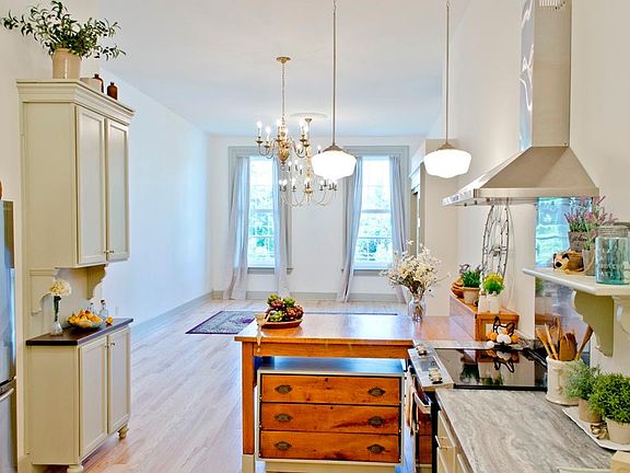 The unit seamlessly blends historic charm with modern convenience, boasting soaring 12-foot ceilings and preserved original moldings. Enjoy abundant natural light through the fully renovated, 8-foot historical windows, which are further enhanced by energy-efficient storm windows.