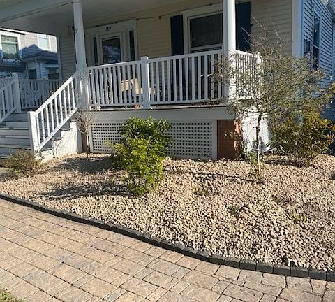 Beautiful open front porch with new railings.