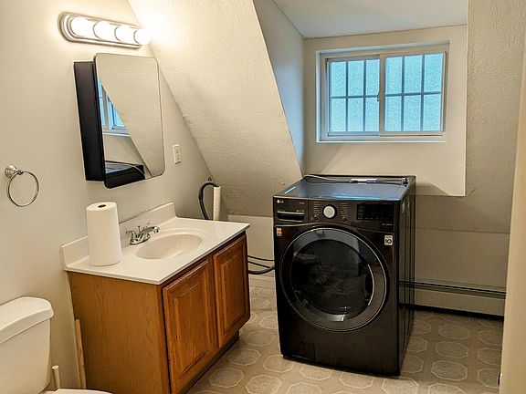 Full sized Clothes Washer and Dryer in the bathroom next to your bedroom included for your own personal use! Brand new Stove / Range oven (not pictured). No Realtor Fees, listed and managed by attentive owner who lives in town. Side by side duplex, unit is on the right side of house. Includes a full sized eat-in kitchen and living area downstairs, upstairs includes a bathroom with a combined washer / dryer for your private use! Unit has off-street parking for two automobiles, just steps from your front door! Great location on secluded side street, within walking distance of center of town, restaurants, supermarket, shopping centers, and of course Milford Regional Hospital. Close location to 495, 1/2 hour from Providence and Boston. Potential tenants: You must have good tenant/landlord relationship history (no evictions) Pass a criminal background check First month rent(1,800), Last month rent(1,800), and Security (1,000) due at lease signing for a total of $4,600 to move in. No smoking Water and Sewer included, electricity and heating responsibility of the tenant Renter is responsible for electricity. Water and Sewer are included in rent