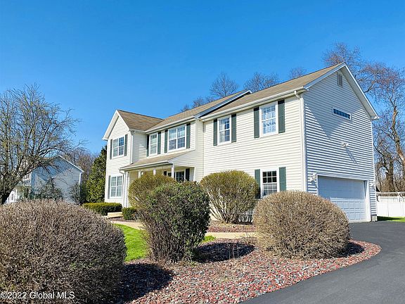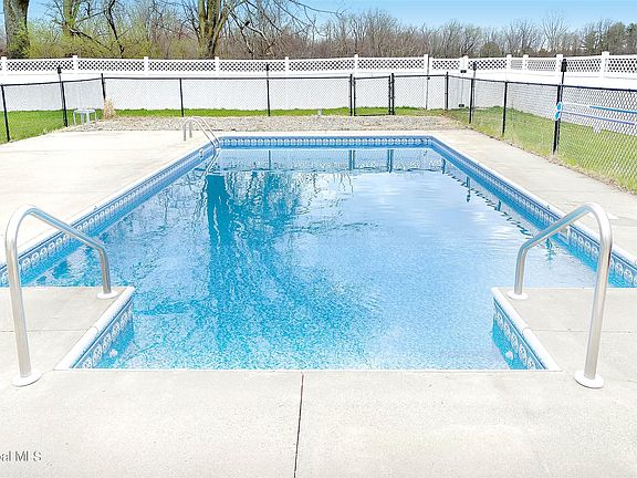 What a super home in a great and convenient Queensbury location. This house looks like a center hall Colonial but has an open floor plan that is a real WOW. Main level includes a den and dining room as you enter then opens into a fantastic media room with built in shelving that room opens into the kitchen with breakfast bar and a glorious family room overlooking the expansive rear yard. A spacious deck overlooks the fenced in rear yard and a playground everyone will enjoy plus an inground pool area. Behind the house is a large corn field which provides super privacy and a very special suburban sub-division environment. The bedroom level is equally interesting providing four bedrooms plus a connecting exercise room/office.You won't find a more delightful home environment!