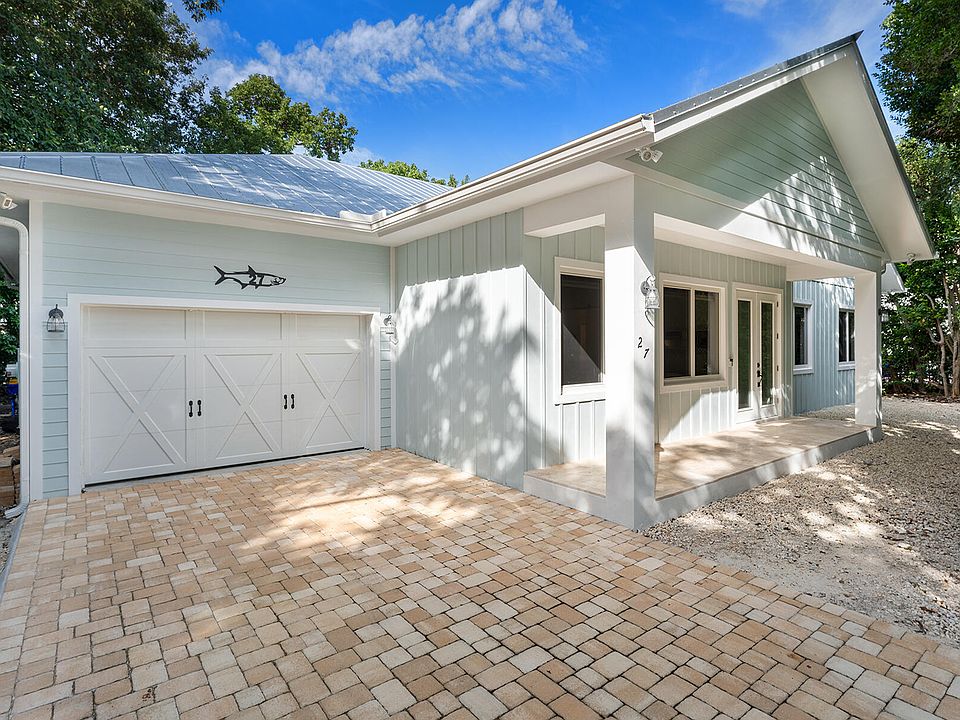 Brand New Coastal Living in the Heart of Islamorada's Exclusive Gated Community of Bay Hammock. Welcome to your own slice of paradise on Upper Matecumbe Key in the heart of Islamorada. Embrace a pristine, just-completed home nestled within one of Islamorada's rare gated communities. This meticulously crafted ground-level residence boasts 3 bedrooms and 2 bathrooms, thoughtfully designed to epitomize our cherished coastal lifestyle. Experience the ''wow'' factor upon entering through the grand double French doors, unveiling an open floor plan that effortlessly melds living spaces. Revel in custom tile floors, exquisitely designed to mimic weathered wood, interior and exterior siding, vaulted tongue/groove ceilings, recessed lighting, barn & solid wood interior doors plus designer double blinds allowing natural light to cascade or providing privacy as desired. The kitchen serves as a focal point, inviting gatherings with its island-style seating, adorned with quartz countertops, undercounter lighting, and a backsplash infused with ocean hues. An adjacent dining area overlooks the screened pool enclosure, creating a seamless indoor-outdoor flow. The Primary Suite features a walk-in closet and a bathroom that opens onto the pool area, enhancing the indoor-outdoor living experience. Step outside onto the tiled travertine pool deck, offering multiple entertainment zones and serene lounging areas. The garage provides ample space for all your aquatic toys, fishing gear, boat, trailer, or a vehicle plus a brick paved driveway allows for exterior parking & curbside appeal. To round out the offering the home is offered tastefully furnished.Positioned directly along Florida Bay, this neighborhood embodies luxury living with a private bayfront marina just steps away featuring dedicated boat slips, a convenient boat ramp, fish cleaning stations, a kayak launching platform, and a captivating sunset observation deck offering breathtaking coastal vistas.