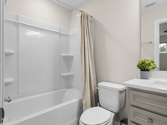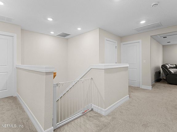 Built in 2023, this beautiful home offers nearly 3,450 sq ft of stylish living space with 5-bedroom, 4.5 bath with tons of natural light and 2 car garage! The main level features tile flooring, custom blinds, a guest bedroom, full bath and a custom walk-in closet, a dedicated home office, inviting family room, half bath, light filled kitchen and dining area. Kitchen offers big island and counter seating, white quartz counters, tile backsplash, walk in pantry. Upper-level features large primary bedroom, ample closet space and upgraded primary bathroom with shower. This level features another 2 bedrooms with ample closet space, an additional bedroom with attached full batch and walk-in closet, laundry room and a beautifully upgraded hall bath and a huge entertainment room to relax. The large fenced in backyard gives plenty of room to run, play and entertain. Zoned to top-rated schools in St Johns County. Come and see this thoughtfully built move-in ready home now! Community amenities include clubhouse, resort style swimming pool, pickle ball courts, tennis courts, fitness center, dog parks, playground, and walking trails. Zoned to top-rated schools in St Johns County and less than 30 minutes to the beach, this home truly has it all.