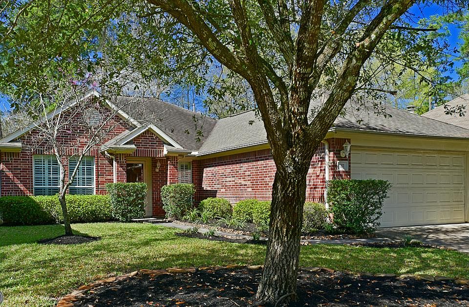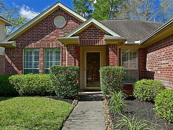 Incredible location! Beautiful Single Story home features 4 spacious bedrooms/2 baths split floor plan located on a quiet cul-de-sac street with easy access to I-45. Upgrades include stainless appliances in kitchen, plantation shutters, HVAC, hot water heater, fresh carpet, paint in living areas & garage door opener! Built in entertainment cabinet & shelving gives this home a custom touch! Large backyard with full irrigation system! Walking distance to subdivision pool & park!