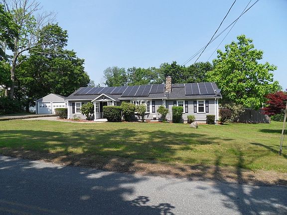 Welcome to this charming ranch-style house that offers a delightful combination of comfort, style, and outdoor living. Nestled on a level lot with a fully fenced yard, this home has three spacious bedrooms and numerous updates throughout. With an inviting open concept layout the updated kitchen seamlessly flows into the dining room perfect for entertaining family and friends The kitchen features modern appliances sleek countertops, ample cabinet space, and flows into the dining area. The living room has a floor-to-ceiling stone fireplace that exudes warmth and relaxation. When it's time to enjoy the outdoors step out onto the deck or patio which leads to the in-ground pool creating a perfect atmosphere for cooling off, relaxing, and barbeques! Did we also mention this home has solar panels which creates low electric bills AND is just moments from the Commuter Rail! The seller needs an end-of-September closing date.