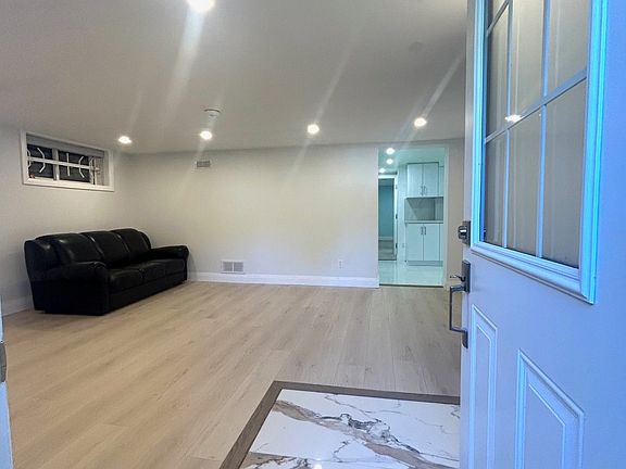 Renovated a Legal band new 2-Bedroom Basement Apartment with 1.5 Bathrooms include a Parking spot which located in a family-friendly neighborhood. This basement apartment offers walk-up separate entrance from front yard. Spacious living room with large above-grade windows providing plenty of natural light. Modern kitchen with ample cabinetry, porcelain tile flooring, stainless steel double-door fridge, dishwasher, backsplash, and room for an eat-in breakfast area. Primary bedroom includes a private 2-piece ensuite. Second bedroom with above-grade window and 3-piece bathroom with standing shower. Private laundry room. Utilities: 40% shared with upper level. Parking: 1 space on east side by bush fence (close to road). Ideal for a small family. Close to reputable schools, major highways, Main Street, shopping, and restaurants.