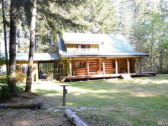 Enter into a slice of paradise. If it's privacy and peacefulness you desire look no further. This charming wiens log home site on a little over 5 ac. Beautiful creek runs through portion of the lower section of lot, large Douglas firs with oversized yard. Offering Fabulous hardwoods on the main. Kitchen recently renovated with stainless steel appliances. Enjoy the generously sized master sweet! Breezeway to garage and shop. Don't miss the vast possibilities this property has to offer.