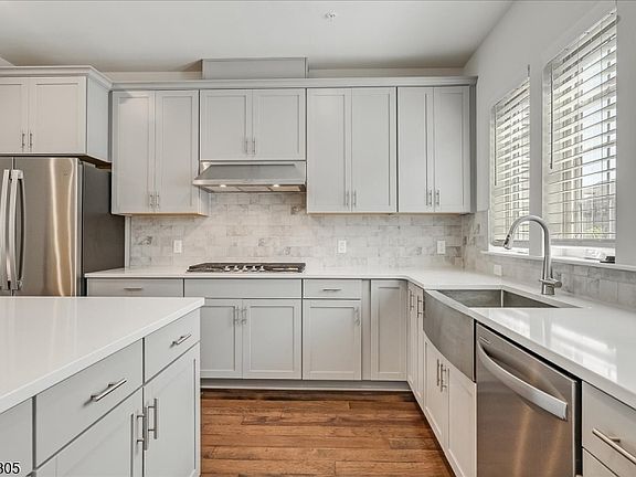This stunning, three-level townhome, built in 2022, offers 2,000 sq ft of modern living in Livingston's sought-after Livingston Square community. The main level is bathed in natural light and includes an open-concept living, dining, and kitchen area with a private deck. The gourmet kitchen boasts Whirlpool appliances, quartz countertops, upgraded Sonoma cabinets, a farm sink, and a large double pantry.Upstairs, you'll find three spacious bedrooms and two full baths. The luxurious primary suite features a tray ceiling and a walk-in closet. A convenient laundry area is also on this floor. The ground level offers a sunlit office/den that could serve as a fourth bedroom and provides access to a 2-car garage.Additional high-end features include hardwood floors throughout, a water softener, custom closet systems. The home overlooks a beautifully landscaped green space with a gazebo, the largest in the community.Its location is a major plus, with easy access to bus and train service to NYC. It's also minutes away from world-class shopping at The Mall at Short Hills, dining, parks, and top-rated schools. NTN is required.