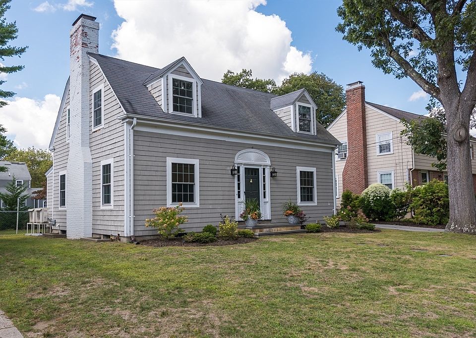 A rare opportunity awaits in Rumford! This remodeled 3-bedroom, 1.5-bath Cape offers elegance and contemporary comforts. New stone entrances and exterior lighting set the stage, while new construction windows add to both curb appeal and energy efficiency. Enjoy the newly landscaped yard from the rebuilt patio deck, featuring a new slider and kitchen door. At home office could readily be a first-floor bedroom! This home features a stunning new kitchen with Bosch stainless steel appliances, quartz counters, and custom new cabinetry. The renovated family room has oversized windows for great light and air! All walls and closets freshly painted, and hardwood floors, refinished throughout. New heat pumps provide A/C and augment heating. The new bathroom shines with custom fixtures and a tiled walk-in shower. The laundry area, complete with new Samsung appliances and a utility sink, adds to the home's appeal. This turn-key home offering classic charm and modern amenities awaits.