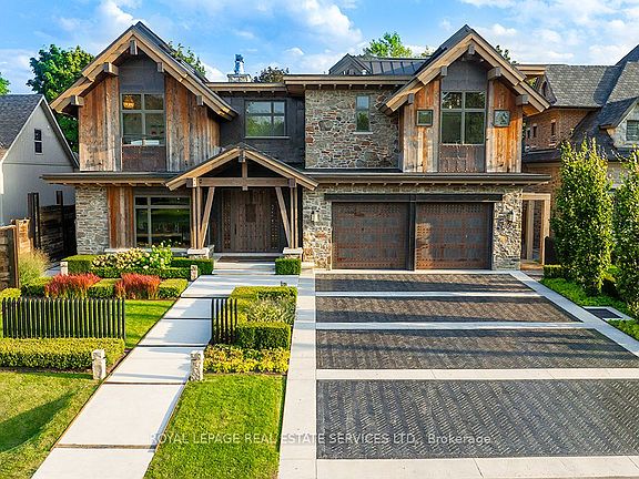 Stunning 4+1 Bdrm, 5 Bath Custom Residence Offering 5000 Sf Living Space + 3849 Sf Garage Space. Exterior Designed By Kelly & Stone Architects w/Extensive Engineering, Standing Seam Metal Roof, Custom Skylights, Heated Concrete Drive, Unilock Herringbone Pattern, Integrated Lighting, & Over $1M In Landscaping. Infinity Edge Pool, Hot Tub, Outdoor Kitchen (Built-In BBQ, Sink, Fridge, Wine Fridge), Custom Fencing, & Concrete. Interior Features Include Douglas Fir Structural Beams, Custom Steel & Oak Details, Board-Formed Concrete Walls, Reclaimed Doors & Wood Ceilings, & Extensive Vanderpump Alain Lighting Installations. The Downsview Kitchen Offers Fluted Custom Island w/Brass Rail, La Cornue 5-Burner Range, Sub-Zero Refrigerator, Miele Dishwasher, Wolf Microwave, Vent-A-Hood, Honed Calcutta Marble Counters, & Custom Cabinetry w/Walnut Inserts. Main Fl Living Rm Features a 12' X 10' Custom Window Overlooking The Backyard Oasis, 11' Ceilings, Montana Moss Rock Natural Stone Wall, Custom Gas Fireplace, & Integrated Lighting. Office w/Custom Ceiling Detail & Oak Paneling. Flooring Includes Ciot Chevron w/Brass Inlay & Heated Floors. Master Suite w/Custom Closets, Vaulted Ceiling, Integrated Lighting, Blackout Curtains, & 6pc Ensuite w/Clawfoot Tub, Steam Shower, 3D Marble Ceiling, Heated Floor, & Vintage Details. Additional Bdrms Include Ensuite/Adjacent Baths, Vaulted Ceilings, & Custom Built-Ins. Basement Includes Bdrm, 3pc Bath, Theatre & Wet Bar Rough-Ins, Wine Cellar Rough-In (12' Ceilings), Radiant Heated Floors, Integrated Hepa Filtration, Pressure Washer, Air Compressor, Led Floor Lighting, And Custom Ceiling Detail. Family Room w/Glass Wall To Underground Garage. Romax Double Scissor Lift Car Elevator, Workshop Cabinets w/Sink, Integrated Speakers, Starlink Security & Cameras, & Extensive Mechanical Upgrades Including 400-Amp Panel & Upgraded Gas Service. A Rarely Offered Architectural Masterpiece, Designed With An Unmatched Level Of Detail & Craftsmanship!