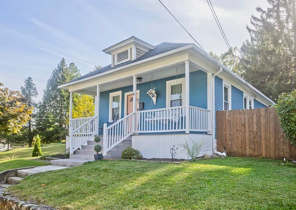Welcome home this bungalow-style home, a true testament to care and charm! Start your mornings on the inviting front porch with a warm cup of coffee, or retreat to the cozy enclosed back porch. The updated eat-in kitchen is a chef's delight, boasting ample storage and counter space for all your culinary adventures. Gather in the spacious living room, perfect for movie nights with friends or quiet evenings in. A sliding barn door opens to a serene bedroom featuring generous closet space, while the second bedroom completes the thoughtfully designed first floor. Step outside to your private, fully fenced backyard oasis, ideal for entertaining or nurturing your garden. The detached one-car garage adds convenience during the winter months. This home is truly move-in ready, offering a perfect blend of comfort and style.