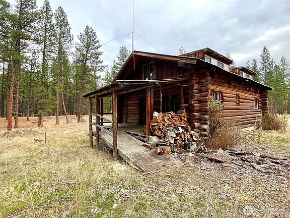 TONASKET - SECLUDED LOG CABIN GETAWAY. Escape to this private 1,100+ sqft cabin tucked away in Aeneas Valley. A perfect retreat for those ready to add their own finishing touches. The main level features a living room with wood stove, kitchen with dining area, utility room. Upstairs provides room to expand; finish the additional family room, two bedrooms and 1/2 bath to complete your ideal cabin layout. If you're seeking for a getaway surrounded by nature, this is the spot. Enjoy close proximity to public ground and lakes perfect for recreation and exploration. Power, private well and septic already in place. Propane tank. Detached carport. Outbuildings. Cash only; Sold as-is.