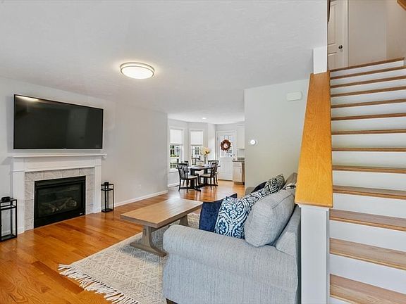 Tyngsboro Crossing! Like new end unit town house is ready for a new owner. Meticulously maintained, this two bedroom and 1.5 bath home has gleaming hardwood floors, crisp carpeting, beautiful cabinetry and stainless steel appliances. Upstairs you will find the spacious primary bedroom with plenty of closet space, soaring ceilings and an awesome loft space that could be so many things! One more bedroom and full bathroom finish this level. Main level has open concept living room with plenty of natural lighting and a gas fireplace. Kitchen and dining area has access to back deck, pantry closet and a half bath. Full basement is where you will find plenty of space for storage and the laundry area. Living will be a breeze with a low condo fee that takes care of snow removal, lawn care, trash removal, exterior maintenance and more! Forced hot air, central air, city water and sewer provide all the conveniences you could ever want or need. Come visit this happy home.