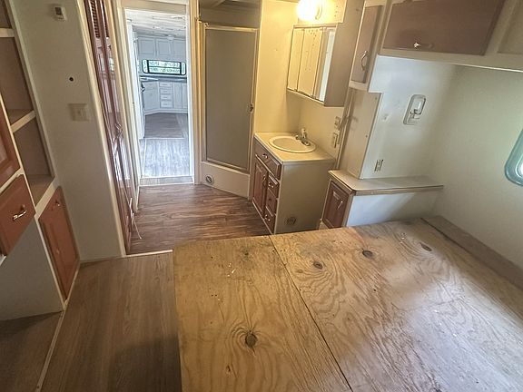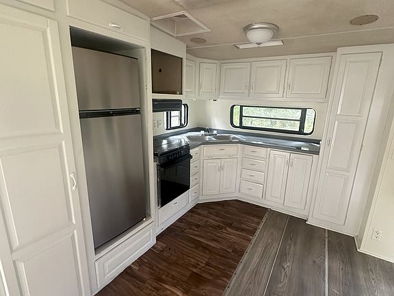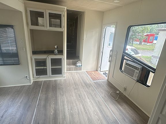 RV unit for rent available today. This place was just recently remodeled and cleaned. Unit comes with power, water, sewer, and basic lawn-care(cutting of grass) included in the monthly rent. Parking for two(2) vehicles max and concrete slab for you to place your outdoor furniture to enjoy the beautiful outdoors. Kitchen and living area have a lot of cupboards for storage. This place has enough space for a small sofa set or a small sectional and a table for 2. Bedroom has 2 closets one with double mirrored doors and a lot of storage cupboards for separation of summer and winter clothing or just a place to store necessities.