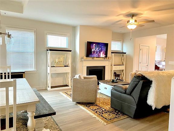 This wonderful like new home has a nice open floor plan for easy entertaining. The home has only been lived for about one year. Just long enough to work out the "new" kinks. There are approximately $33,000 in upgrades.... Such as the back yard covered porch; upgraded tile 12X24 MB & hall bath; upgraded tile 12X24 in laundry room, a site-built Drain 2X2 Mosiac tile in master shower with no-curb entry in master bath & an added chrome shower wand; Upgraded luxury vinyl flooring in master bath/closet & 2nd bedroom/closet; an added window blind package; in the unfinished upstairs the hot/cold water was stubbed & bathtub installed - - so finishing the second floor would be very easy; the lot was a lot-premium upgrade; The trash bin has an added concrete slab poured with a privacy fence around the trash bin; and finally an upgraded 4ft ornamental iron fence was added to the back yard sides with an 8âEUR(tm) vinyl privacy fence across the back. This Active Adult Community could be your new home with ZERO Lawn maintenance and easy living. Just lock the door and head out whenever you want! You won't find a more reasonably priced 55+ in North Georgia. There is a clubhouse with resort-like pool, bocce ball, pickle ball, dog park, community garden and walking trails. The clubhouse has a fitness center, yoga studio, arts & crafts room & demonstration kitchen.