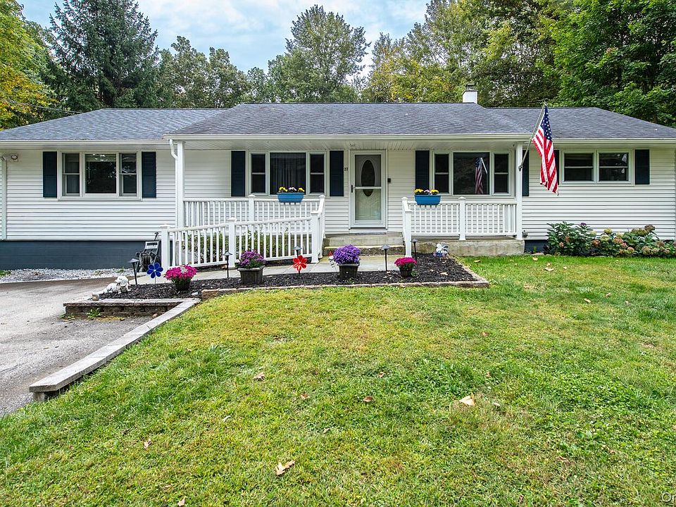 Experience single-level living in all its splendor with this beautifully maintained ranch, privately set on 0.80 acres bordered by mature trees. This unique home stands out from the rest thanks to a thoughtfully designed bonus living area, complete with its own private entrance from the yard, a spacious living space, full bathroom, separate laundry room, and ample storage—perfect for extended family, guests, or a home office. The main living area features an upgraded kitchen with granite countertops, stainless steel appliances, a center island, and custom cabinetry, making it a true centerpiece of the home. The spacious living room flows effortlessly into three generously sized bedrooms, all with hardwood floors hidden beneath the carpeting, and a second remodeled full bathroom.