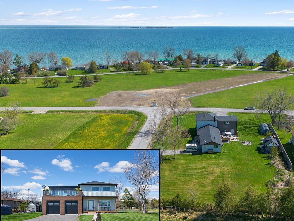 Newly renovated (2022-2024) custom home on over half an acre offers modern lakeside living with small town vibes. Over 2500sf of contemporary living space with high-end finishes and immaculate attention to detail throughout. Large bright living room with illuminated coffered ceilings offers a great gathering place with built-in shelving, hidden projector & screen, electric fireplace and beautiful open wooden staircase. Chef's kitchen with large island, 2 separate sinks, quartz countertops, butler's pantry, custom built-in banquet seating, woodstove and 2 walk-outs. Main floor is completed with 2 generous bedrooms sharing a jack-and-jill bathroom w in-floor heating, spacious laundry room with custom cabinetry and convenient 2pc powder room for guests. Upper level primary retreat complete with modern 5pc ensuite with heated floors, glass shower and soaker tub, 2 walk-in closets, living room with wet bar & wall-to-wall sliding doors out to the massive roof-top patio with glass railings offering unobstructed views of the lake and surrounding green space. 6' tall full-length heated and insulated crawlspace with wine cellar and 2 sump pumps provides great storage space. This home offers the best of outdoor living with a large interlock patio with hottub, outdoor shower, firepit, bunkie and covered front porch perfect for sunrises. 30'x24' 3-car garage w 10' ceilings, inside access and mandoor. 2 separate driveways provide ample parking. Main floor has wide hallways and roll-in shower and could easily be made wheelchair accessible with ramps. New septic 2022. This one-of-a-kind home offers quick lake access and is a mere minutes away from beautiful Presqu-ile Provincial Park and charming downtown Brighton. If you're looking for a quiet lakeside living with a modern twist - this one's for you!