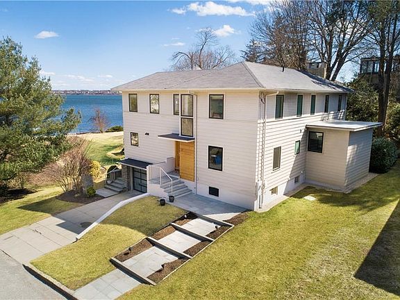 Rare Edgewood opportunity - over 1/2 acre of waterfront property with sweeping views of Narragansett Bay and nestled between the Rhode Island Yacht Club and The Edgewood Yacht Club. This award winning architecturally redesigned contemporary home was designed by acclaimed architect Peter Twombly of Estes/Twombly Architects. Marvel at the breathtaking views from the oversized windows or from one of the two outdoor living areas that connect. The open concept floor plan is ideal for entertaining with the living room, dining room and kitchen that flow seamlessly together. A "mid-century" brick fireplace and maple hardwood flooring adds warmth to the the spacious living room with double glass sliding doors that open to the wood deck with wood burning pizza oven. A home office is discretely tucked off the living room. The eat-in kitchen offers a large center island with seating for 4, Blue Star 4 burner gas, maple cabinets, concrete counters and a built-in buffet. The blue stone patio off the kitchen and dining room offers a relaxing area to enjoy the magnificent expansive yard and waterfront. A first floor guest suite completes the first level. The master suite is a comfortable space that has been thoughtfully designed to appreciate the views and to maximize space and features a spa-like master bath. There are 2 additional bedrooms, one with sweeping water views! Conveniently located minutes from historic Pawtuxet Village, and 4 miles from Downtown Providence