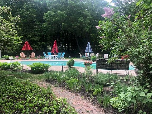 Prominently situated in the Historic Village of Chester. Large price reduction so you can move in and enjoy the pool. Show stopping blooming purple iris hugging the stone wall with the magnolia tree backdrop and peony perennial gardens is a lovely entrance. Upon entering the home, you see the beautiful back yard oasis, with in ground pool through the French Doors. All offers reviewed Monday 8/14 at 12:00pm Light filled eat in kitchen with a granite hearth and wood stove wide plank hard wood floors, granite counters and island, and 30 feet of windows overlooking nature and conservation land as far as you can see. The formal dining room with a fireplace, and wide planked floor and walls is perfect for entertaining. First floor bedroom or office with Fiber optics for fast internet, fireplace and private bathroom. The spacious four bedrooms upstairs each have a walk in closet. The walk up attic has potential for more living space, or easy access for storage. The bonus room is divided into 3 rooms for an opportunity for many configurations based on your personal needs, as a guest suite or additional two bedrooms with living room. The fenced back yard has privacy, level lawn area, stone walls, and in ground pool surrounded by a patio, perennial gardens, raised beds for growing vegetables are ideal for large or intimate gatherings. New Hampshire and has a personal interest in Property. All offers reviewed 8/14 at 12:00pm