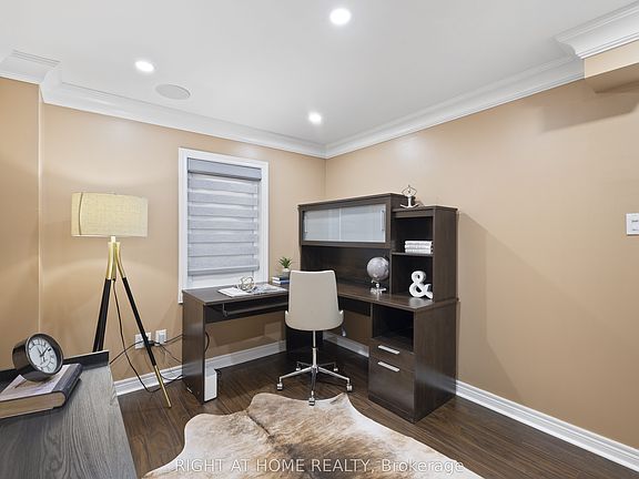 Stunning 3-Bedroom End-Unit Townhome Backing Onto Green Space in Sought-After Aurora Grove. Welcome to this beautifully maintained freehold end-unit townhome tucked away on a quiet, family-friendly cul-de-sac in the heart of Aurora Grove. Offering rare privacy with green-space views and only one neighbour, this home combines thoughtful upgrades with inviting natural light and an open, functional layout with Flat ceilings throughout and pot lights.Step inside to a bright and elegant main level, hardwood flooring, and a stylish living and dining area with custom built-ins - ideal for both everyday living and entertaining. The spacious eat-in kitchen overlooks the serene backyard and features stainless steel appliances, ample cabinetry, updated counters, and a walkout to your raised deck and private fenced yard.Upstairs, you'll find three generous bedrooms, including a relaxing primary suite complete with a walk-in closet and 3-piece ensuite. Additional bedrooms offer charming treed views and flexible space for family, guests, or a nursery/home office.A lower-level bonus room provides a perfect work-from-home nook, play area, or fitness space, plus a large laundry room with extra storage. Retractable stairs lead to a spacious finished attic loft - a unique feature offering exceptional storage or a fun hideaway space.Outdoor living shines here with a private backyard, side-yard access, garden shed, and parking for two vehicles plus a direct-entry garage.