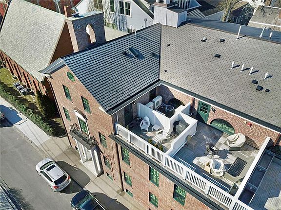 Welcome to Historic Hill’s, Kay Hall Lofts, a boutique 7 unit condominium association, that blends industrial elements with modern finishes and luxury amenities. Beaming with natural light this penthouse property incorporates an open concept kitchen, dining, and living space highlighted by exposed brick walls, high ceilings with exposed beams, a gas fireplace and wood floors. The designer kitchen features quartz countertops, stainless steel appliances, a large farmers sink, ample cabinet storage and a pantry bar with wine fridge. Directly off of the kitchen awaits your private roof top deck where you can enjoy gardening, outdoor living and dining, and cooking on the grill. The custom staircase, made from reclaimed wood original to the building, leads you to the master suite with gorgeous views of Newport Harbor and Pell Bridge. The master bath features a double vanity, tiled stand up shower as well as a standalone soaking tub. The second floor also includes an office/den space ideal to work from home, convenient laundry area, and a guest suite with a full bath attached. Park in your assigned off-street parking space or underground garage space and take the elevator directly to your unit. Additional amenities include A/C, video intercom system, additional private storage, tastefully furnished lobby and mail room. All within an easy stroll to Bellevue Avenue, Newport Harbor, shops, restaurants, museums and more! This is Newport living at its best! Furniture negotiable.