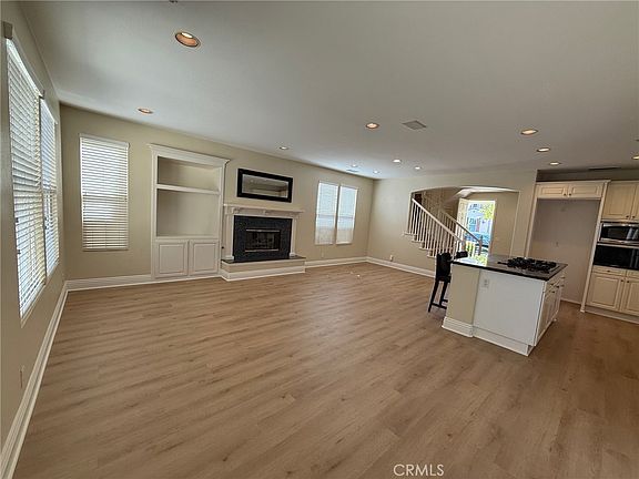 This beautiful & highly upgraded home is located in gated Oak Creek community. Extra long driveway w/portico entry. 4 bedrooms plus a den. Light & bright. Large open great room with fireplace and entertainment center. Brand new wood like vinyl flooring though out up and down levels. Crown molding, door casing & 5' baseboard thru-out. Gourmet kitchen with granite counter top, center island with breakfast bar, Stainless steel appliances, 5 burner gas stove, double oven & trash compactor. Formal dining area. Den/bedroom in downstairs. Spacious master suite. Extra large room is next and great for home office. Two walk-in closets. Master bathroom with tub & separate shower & double vanities. 2 secondary bedrooms on upstairs. Inside laundry. Professional landscaped front & backyard with built-in BBQ & wok. Enjoy all community amenities. Close to Irvine Spectrum, shopping centers, schools, Hoag and Kaiser Permanente hospitals & freeways.