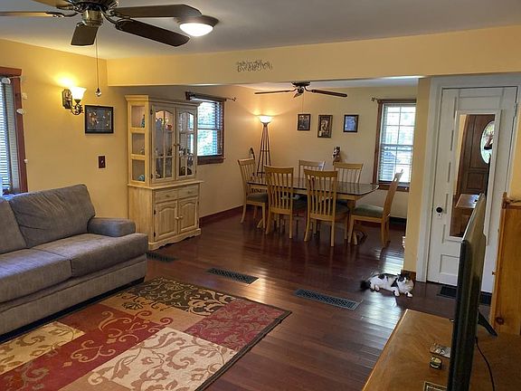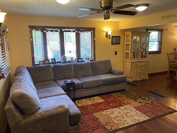 Turnkey! Adorable 3 bedroom 2 full bath, 1 Car garage, 1080sqft (+finished basement area) Cape home in the heart of Russell. The layout makes this home feel spacious. New Roof 9/19, fenced in yard, shed, City Sewer and water. This open an airy home has a large formal dinning room which opens up to the very bright living room with large windows flooding the space with sunshine. Perfect for entertaining. The kitchen also has an eat in area which opens up to the kitchen with refurbished cabinets which wrap around giving ample storage, the space is finished off with newer appliances. 2 full baths - 1 on the first floor and second floor also has a full bath and 3 good sized bedroom with berber carpeting. The basement is partially finished with a bar area as well as entertaining space adding the perfect square footage to this home. The fully fenced in yard is gorgeous with lots of rm for a garden as well as mature blueberry bushes.
