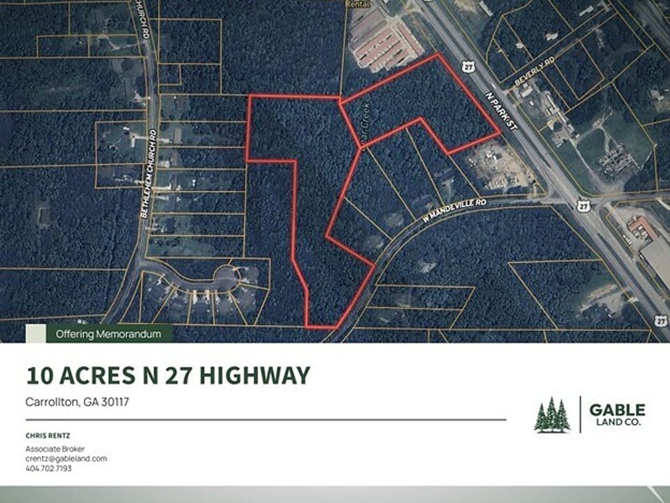 This 10.69-acre parcel is strategically positioned along a major connecting corridor between the cities of Carrollton and Bremen, Georgia. The area is characterized by a mix of commercial and light industrial development, making it ideal for a variety of business and investment opportunities. The property benefits from excellent accessibility, located just three miles from Interstate 20, offering seamless regional and interstate connectivity. In addition, proximity to both airport facilities and rail infrastructure enhances its appeal for logistics, distribution, or industrial use. This prime location combines visibility, access, and infrastructure in a growing and dynamic corridor. The Land offers a mellow topography change and mature timber is noted throughout. Two challenges for the property is the lack of sewer connection and the location of a water feature.