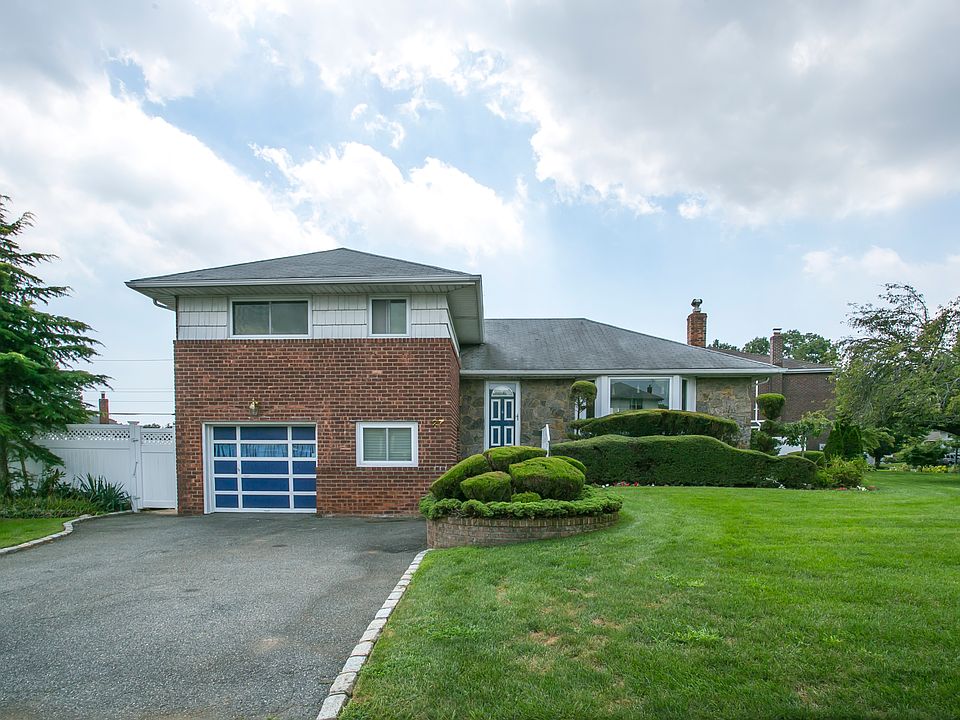 Sunlit bright home centrally located to shopping, schools, and transportation. Large, expanded Split-level home In The Heart Of Clearview Village In Syosset. This wonderful home features hardwood floors throughout the first and second floors. The home has 4 Bedrooms & 2.5 Updated Baths, a large living room with vaulted ceilings, & dining room, as well as an oversized den overlooking the serene backyard. The eat-in-kitchen is spacious and bright, and the finished basement has nice open space as well as utilities room & laundry room. There is also an office, a powder room, and a 1-car garage / 2 car private driveway. Large Property With a covered Patio & Gunite Pool. Gas line on street. Close to shopping, trains, highways and schools. Syosset School District: Baylis Elementary/HBT Middle School.