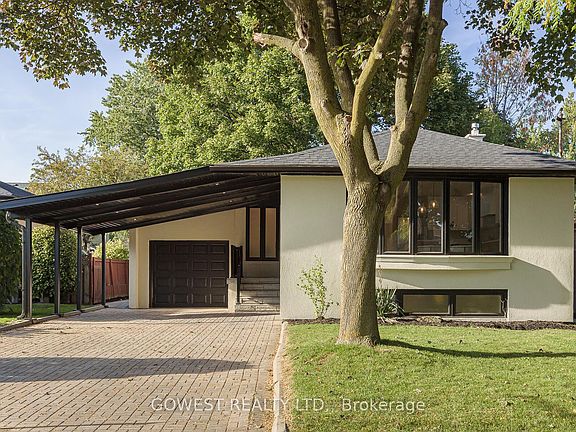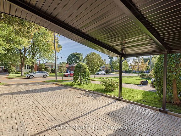 This beautifully renovated raised bungalow blends timeless style with modern convenience. The open-concept main floor showcases cathedral ceilings with a skylight, pot lights, and a designer kitchen featuring Canadian-made custom cabinetry with LED lighting, a 7-ft island, KitchenAid stainless steel appliances including a gas range, pot filler, and quartz countertops. Luxury Canadian hardwood floors flow throughout, while the bathrooms offer heated tile floors, custom vanities, LED mirrors, and a spa-like main bath with custom cabinetry. The home includes three spacious bedrooms, main floor laundry (plus a roughed-in option), and a separate side entrance to the fully finished lower level with above-grade windows, high-quality vinyl flooring, its own laundry, and a full suite of stainless steel appliances; ideal for a one-bedroom in-law suite. Recent upgrades include spray foam insulation at the front of the home, all new wiring with ESA certification, a new roof (2025), a new garage door, fiberglass front door, custom carport finishing, soffit exterior lighting, stair lights, and an engineers letter for the ceiling feature. Exterior enhancements include stucco finish, new railings, professional landscaping with new walkways and stairs, and parking for up to six vehicles. Central air, an Ecobee smart thermostat, and thoughtful updates throughout complete this move-in-ready home. listing information