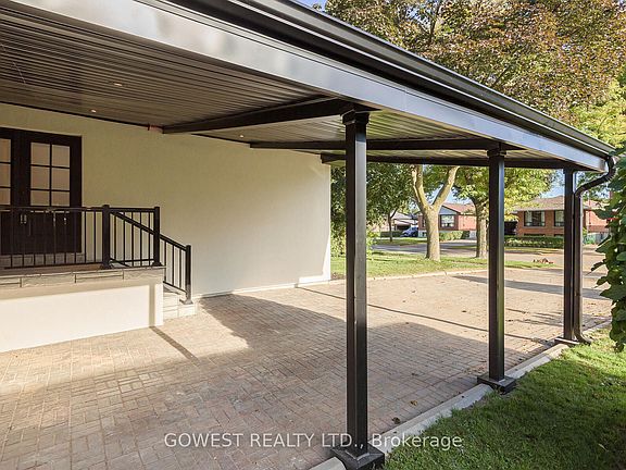 This beautifully renovated raised bungalow blends timeless style with modern convenience. The open-concept main floor showcases cathedral ceilings with a skylight, pot lights, and a designer kitchen featuring Canadian-made custom cabinetry with LED lighting, a 7-ft island, KitchenAid stainless steel appliances including a gas range, pot filler, and quartz countertops. Luxury Canadian hardwood floors flow throughout, while the bathrooms offer heated tile floors, custom vanities, LED mirrors, and a spa-like main bath with custom cabinetry. The home includes three spacious bedrooms, main floor laundry (plus a roughed-in option), and a separate side entrance to the fully finished lower level with above-grade windows, high-quality vinyl flooring, its own laundry, and a full suite of stainless steel appliances; ideal for a one-bedroom in-law suite. Recent upgrades include spray foam insulation at the front of the home, all new wiring with ESA certification, a new roof (2025), a new garage door, fiberglass front door, custom carport finishing, soffit exterior lighting, stair lights, and an engineers letter for the ceiling feature. Exterior enhancements include stucco finish, new railings, professional landscaping with new walkways and stairs, and parking for up to six vehicles. Central air, an Ecobee smart thermostat, and thoughtful updates throughout complete this move-in-ready home.