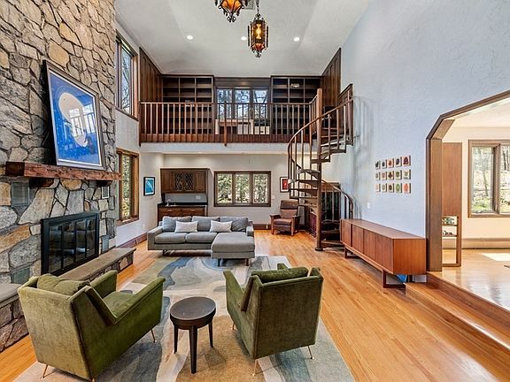 Breathtaking and sun drenched contemporary this home offers a wonderful open flow on three levels of living. The open foyer leads to dramatic formal living room with cathedral ceilings, fireplace and spiral staircase opening to a reading nook/office space. The bright formal dining room has sliding doors accessing a spacious, private deck. A stunning, well equipped eat-in kitchen flows into a comfortable family room. Spacious second floor primary suite is complete with large bath, two walk-in closets and a sunroom. Three additional bedrooms and family bath complete the second floor. The lower level offers playroom, game/billiards room, fitness room, and newer full bath. Enjoy outdoor entertaining spaces complete with terrace, deck, covered pergola and dining areas. This wonderful home is sited on .97 tranquil acres with specimen trees and mature evergreens. Highly desirable private road with convenient access to commuting routes.