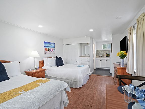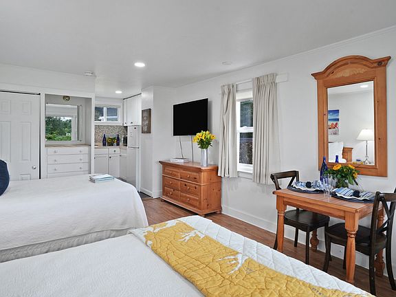 Turnkey Coastal Retreat at Island Inn! Welcome to a thoughtfully maintained studio condo nestled in one of Oak Bluffs’ most convenient and scenic settings. This cozy end unit offers effortless Vineyard living with a light-filled interior, a practical layout, and easy access to all the essentials of a beachside lifestyle. Step inside to find vinyl plank flooring in the bedroom, tile flooring in the bath and kitchen, and a covered porch overlooking beautifully landscaped common grounds. The compact kitchen includes a two-burner electric cooktop, refrigerator, and stock cabinetry—perfect for vacation stays or seasonal living. The Island Inn community is rich in amenities, offering a swimming pool, tennis courts, and meeting rooms, all just minutes from the public beach, Noman’s Restaurant, and Farm Neck Golf Course. With a lawn and pool view, shared green space, and open gravel lot parking, this unit offers comfort, convenience, and charm. Whether you're looking for an investment property, a seasonal escape, or a simple beach getaway, this low-maintenance unit offers tremendous value in a great location!