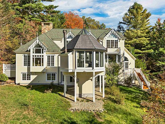 The Custom-Built Estate of World-Reknown Author Robin Cook. Beautifully sited on one of the most perfect homesites in Waterville Valley. High up on Snows Mountain this private secluded estate offers views and privacy that cannot be replicated. This 4-bedroom 4 bath gothic revival home offers first class living on each of its three levels. As you enter from the courtyard and covered porch into the multi-story entry way you are drawn to the vaulted living room with a floor to ceiling stone fireplace and expansive views out over Snows Mountain and Mt Tecumseh. Steps away is the top-of-the-line chef’s kitchen the views will also astound you, next to the den plus a grand dining room with fireplace. An oversized mudroom with direct access from the heated two car oversized garage, half bath and laundry room completes the main floor. On the walk-out you will find three bedrooms all with great views. One bedroom enjoys a private bath. The bunkroom and the third bedroom share a full bath. In addition, there is a family room plus adjacent sun filled game /exercise room. Also on this level is a wine cellar and storage room. Heading upstairs to the private primary suite you will find a large bedroom, dressing room with multiple closets a custom Marble bath with jetted tub and the office/library which offers some of the best views in WV. Multiple decks surround the home and lead to the private writer's roost where Dr. Cook gathered inspiration to write many of his novels. See Video Link