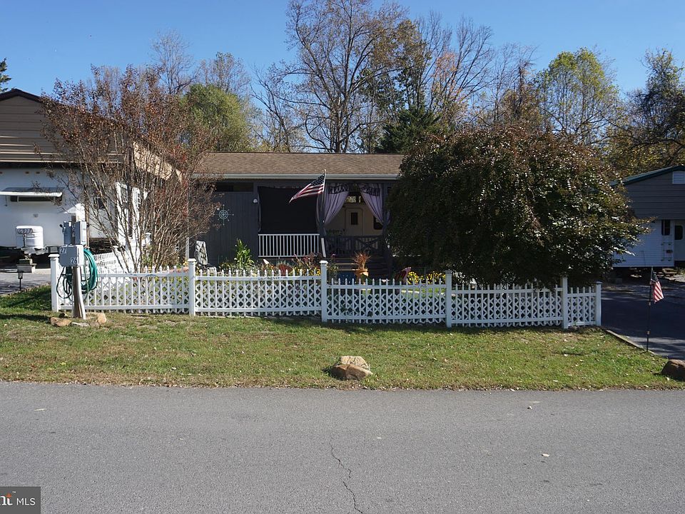 This River Bend lot has an incredible view of mature trees in the back yard. An amazing wrap around porch , Outside bar with sink (as-is)/ cabinets. Fenced in front yard with white picket vinyl fencing and a fire pit. Plenty of storage in the shed. Ramp access to the porch. RV has one bed and one bath/ shower w/ paved driveway- Lovely landscaping. So many Amenities from pools, parks, baseball field, tennis courts, basketball courts, trails, bar/ lounge, convenience store. Come explore a wonderful vacation getaway only 1.5 hours from DC! River access in the community-enjoy boating/ jet skiing on the deep waters of the Potomac River! Seasonal park, April 1st- November 1st .