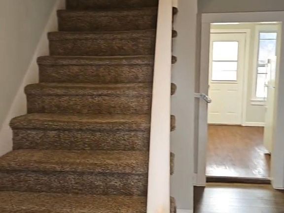 Clean and spacious 3 Bedroom Unit. This downstairs/upstairs townhouse has a dining room and living room, pantry in kitchen, washer/dryer hookups in basement, 3 bedrooms and bathroom on the second floor. Appliance included (Fridge & Stove) Tenant pays their own utilities (Gas Heat/Hot Water) Basic Trash Removal Included. Occupancy subject to approved application. Currently there is no off street parking available. Pictures are of an identical unit. The available unit has a bathtub/shower. In process of painting, replacing carpet in bedrooms.