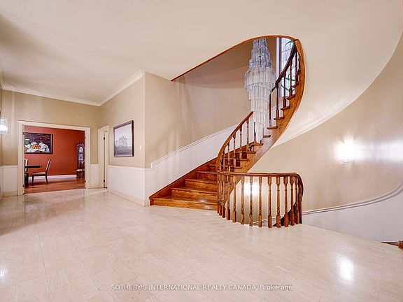 Welcome to discover this extraordinary Georgina Revival hallmark. Quietly situated on a private enclave of the prestigious St. Andrew-Windfields neighborhood, this magnificent residence boasts approximately 6,348 sq ft above grade and features five (5) bedrooms, each with a full ensuite upstairs. The expansive central layout announces a formal entrance and graceful symmetry. Tasteful architectural refinements and recent upgrades throughout. An elegant circular stairwell, European oak panelling, splendid mirror walls, hand crafted vanities, and intricate beveled lead designs all mingling to create artistic and sensational aroma for the home. The main kitchen is equipped with a secondary kitchenette, offering a variety of cuisine options. Two sets of appliances plus a freezer in the lower level are all included. A wealth of sash windows and glass entrances, thoughtfully proportioned to provide abundant natural light. L-shape courtyard, lash backyard, and ample side yard provide a high level of privacy and comfort for garden gathering and family relaxation. A spectacular underground multi-purpose sport court and enormous game room is well-loved for year-round recreational activities. Extra large three-car garage, six additional ground parking spaces, and a basketball stand conveniently appointed at the north end of the building. Hot Water Tank owned. Partially furnished. The entire property and furniture presented are included, with the exception of the covered indoor pool wing, which is locked for safety. The location features a perfect proximity to top public and private schools, Granite Club, Sunnybrook Hospital, Hwy 401, golf courses, fine dinings and upscale shoppings. 27 Junewood Cres proudly enhances this exclusive community which is known for its sophisticated executive living and unparalleled social connectivity.