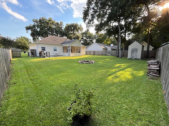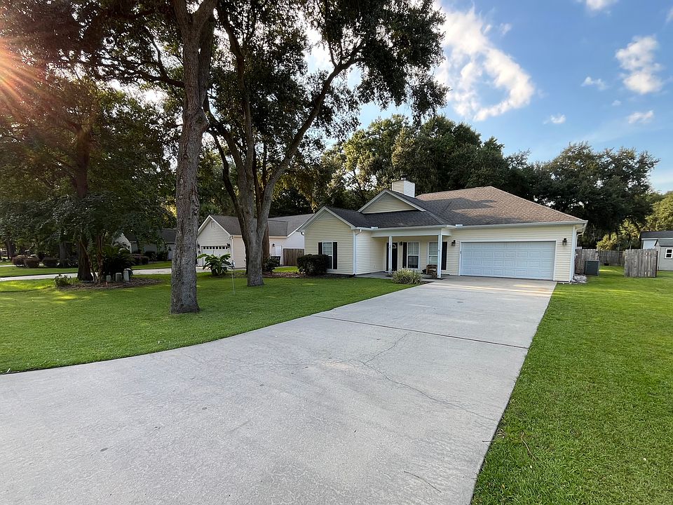 Welcome Home! Enter the living room that reveals a wood burning fireplace. Natural light is reflected throughout the home. The fireplace is flanked with two bedrooms and a shared bathroom on one side and the primary bedroom on the other side which contains a private bathroom. Wainscoting surrounds the dining room that is open to the kitchen. The kitchen is a culinary delight equipped with 1 year old stainless steel appliances, abundant cabinetry and elegant Corian countertops. Large pantry is located just off the kitchen in the laundry room which has capacity for a full size washer and electric dryer. A lockable doggie door exits from the laundry room to the fenced in backyard. A screened porch is just off the dining room complete with ceiling fan. Exit the porch onto a large concrete patio with lighting and removeable Sun Sail Canopy for outdoor enjoyment. Large fenced in back yard with storage shed and large fire pit. 2 car attached garage enters the home at the kitchen. New HVAC in 10/2025. Sprinkler system in front and back yards. Quick drive to Parris Island and MCAS Beaufort (about 20 minutes). Downtown Beaufort is less than 3 miles with shopping and dining. Hunting Island State Park is a a quick 25 minute drive. Schools: Coosa Elementary, Lady's Island Middle and Beaufort High.