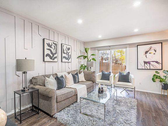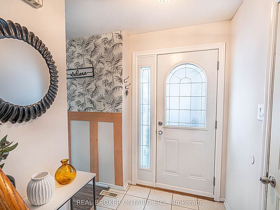 A fabulous mint condition 3 bedroom home with finished basement! Affordable and spotless, a great family home just move in. This beautifully maintained freehold townhouse offers nearly 1,800 sq ft of living space across three functional levels, including the basement. The open-concept living and dining area is enhanced with pot lights, laminate flooring, and a stylish accent wall, creating a warm, modern feel. The updated kitchen (2023) boasts quartz countertops, and a new Fridge (2024) - perfect for cooking enthusiasts. Enjoy a deep private backyard with mature trees and no rear neighbors-perfect for relaxing or entertaining. Additional updates include new Windows (2022), Roof (2019), Fencing (2020), and an enclosed Porch (2022). Convenient direct garage access and 3 parking spaces (1 garage + 2 driveway). Located in a mature, family-friendly neighborhood, you're steps from parks, trails along Etobicoke Creek, public transit, hospitals, and with grocery stores and restaurants just a walk away. This hidden gem proves you can upsize affordably - right here in Brampton North