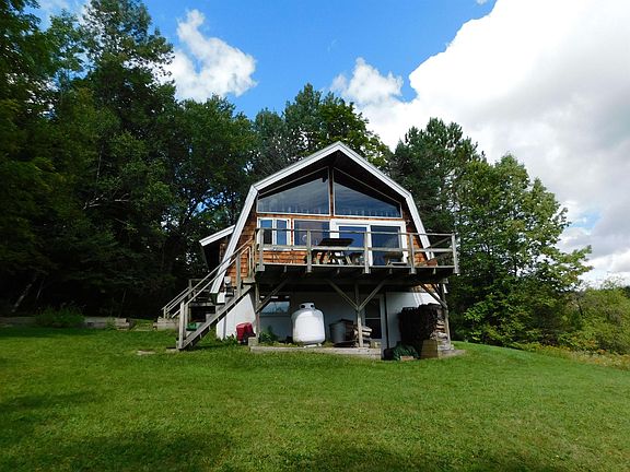 Lovely 3 bedroom 2 bath vacation home located in a very private setting on dead end road overlooking a pond with countryside hills and adjacent fields. Home boasts a fieldstone fireplace, hardwood flooring, updated bathrooms and oil heat. Relax on the deck and enjoy mother nature. New roof in 2022. Storage room in basement could be converted to den or office space. This house has been in the family for over 45 years. VAST trail system nearby.
