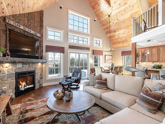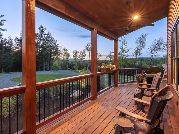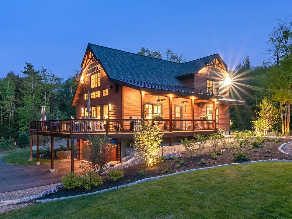 Escape to luxury & privacy in this custom-built home, boasting exquisite timber frame accents and real cedar shakes. This exceptional estate is situated on 16.75 acres, offering picturesque views of the Ossipee Mountain range & Red Hill. With meticulous attention to detail, this home is the perfect sanctuary for relaxation and entertaining. Step inside to discover open concept living room adorned with a gas fireplace, featuring a stunning stone and rough-cut wood mantle. The dining area and kitchen are a chef's delight, featuring custom cabinets, stone counters, a butler's pantry, & Miele & Sub Zero appliances. These spaces seamlessly flow onto the expansive deck w/hot tub, providing a perfect indoor-outdoor living experience. The main level offers a luxurious primary bedroom and bath, complete with a custom multi-head tiled shower, heated floors & a private/seasonal outdoor shower. Upstairs, a vaulted pine ceiling with douglas fir timber frame details greet you. The 2nd floor accommodates two spacious bedrooms, full bath, & balcony office. The walkout lower level features a laundry/mudroom with custom built-ins and a two-car heated garage w/ epoxy floors. Equipped with a fully wired Sonos system, security cameras, and a fully automated generator. Maximize storage with the 28 x 40ft custom heated barn, which includes an attached spacious home office and oversized garage doors. This property caters to all your needs, offering the perfect space for your toys & hobbies.