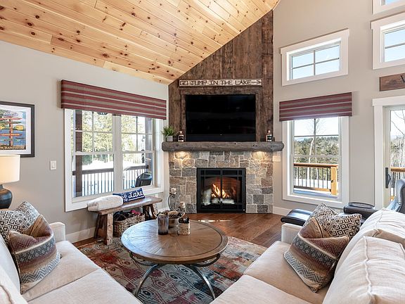 - Cathedral Ceiling(s), Dining Area, Hearth, Kitchen Island, Kitchen/Living, Natural Light, Natural Woodwork