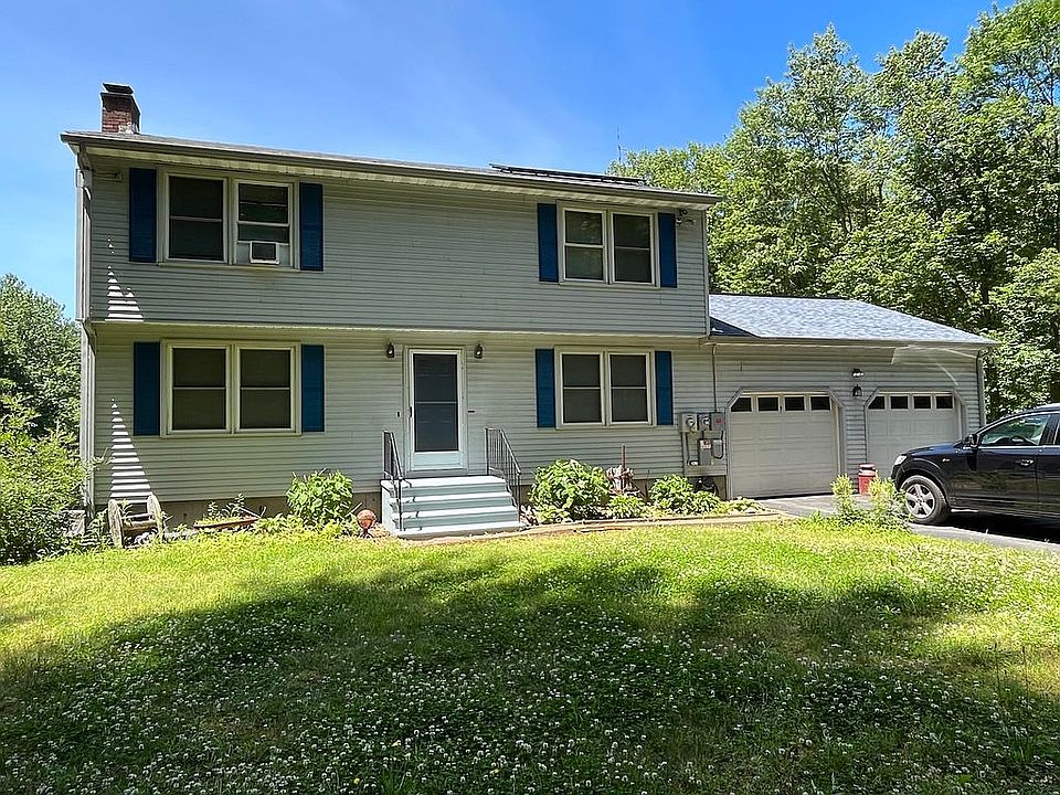 One of a kind Property for sale. Newly remodeled 4 bedroom, 2 bath home on 9.03 Acres, Flat grassy land with trails, perfect for horses. Newly remodeled home on 9.03 Acres for sale. Flat, grassy land, perfect for horses. 4 Bedroom, 2 Bathroom, 2 car garage, partially finished basement, new roof, Solar panels. 8 horses are allowed on 9 acres. The yard is level with sand under the grass, perfect for horses. Freshly remodeled and painted 90% of the home, including the huge Kitchen with granite counter tops. It has a granite bar area and a sliding glass door to the freshly stained back deck. both bathrooms have been remodeled, ceramic tile in the upstairs bath. There is an attached 2 car garage (400 square feet) The walk out basement has 2 windows to let light in and is partially finished. (950 square feet) New roof with large solar panel array installed. The solar provides 95% of the electricity used, the power company bill is only the line connection fee. The solar lease payment will be taken over by the new owner, it is the same every month, and half of what the electricity bill was. There is a wood fired boiler and an oil boiler, either can be used to heat the entire house and the domestic hot water, no need to burn oil or pay for it. Includes a few cords of dried hardwood, it may be enough for the next winter. Both the upper and lower decks have been freshly stained, they both have sun shades. The lower deck has been converted from a pool deck to a garden deck with sub-irrigating garden boxes and an auto watering system. The pool area now has a stone fire pit and is a great location to relax at night with a fire. Horses are welcome on the property, you are allowed to have 8 horses on 9 acres in Ellington, the back yard is perfect for a horse paddock. The land is flat and mostly sand under the grass, perfect for horses. The back yard is mostly cleared and open, ready for a barn and paddock. The land has a storm water detention pond with a flat elevated berm around it, suitable for riding, and plenty of places to ride on the trails throughout the property. There is a 1-acre area in the back woods that would be perfect for an indoor or outdoor riding arena. The driveway was recently sealed, it is flat and level with additional paved parking spots. The lower driveway was recently rebuilt with drainage pipes and new processed stone. There is a parking spot for an RV or camper with a 30-amp power outlet. There is separate out building for storage. Included in the sale is a ThermoSpa Hot Tub on the concrete patio outside under the stars. Multiple places are wired for a movie projector for outside movies. Reverse Osmosis system with a 20-gallon tank and a separate whole house water softener system. The property has a shooting range and a 650-foot Zip Line. The town road is currently gravel, but the town intends to pave it soon. Option to purchase the plow truck for the winter snow removal. One mile away from the beautiful Crystal Lake for access to the sandy beach, swimming, fishing, kayaking and boating. Very quiet, private peaceful place to live. There is an 88 Acre equestrian camp bordering the entire back property line.