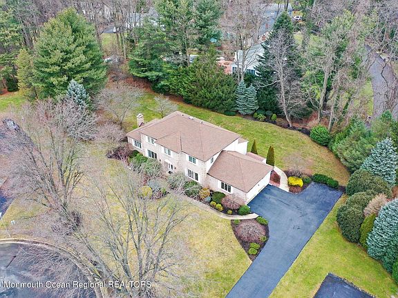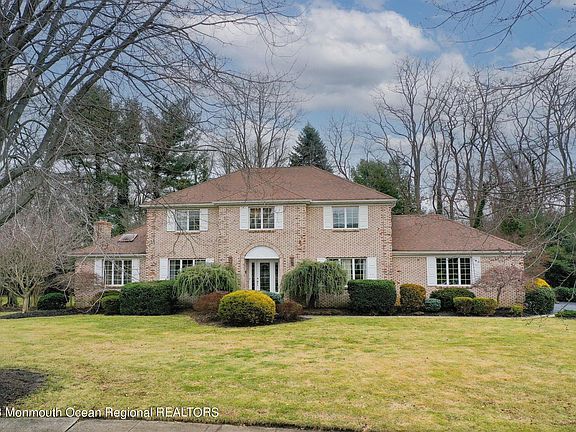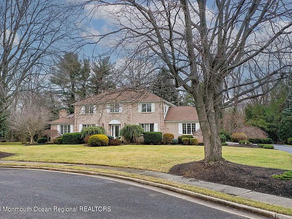 Meticulously maintained custom colonial at the end of a quiet cul-de-sac in sought after OAK HILL. The owners have updated the roof, AC & heating, hot water heater and more. There are beautiful hardwood floors throughout. The large eat in kitchen boasts granite counters, center island & a sliding door that takes you out to the oversized deck overlooking the large back yard with mature landscaping for maximum privacy. The kitchen opens to the family room with it's brick gas fireplace,vaulted ceiling & skylights. The first floor also features a light filled OFFICE with sliding doors out to the deck. The spacious primary suite has a walk in closet & ensuite bath. All this PLUS it's close to all modes of transportation, great shopping, fabulous restaurants and the beaches of the Jersey shore