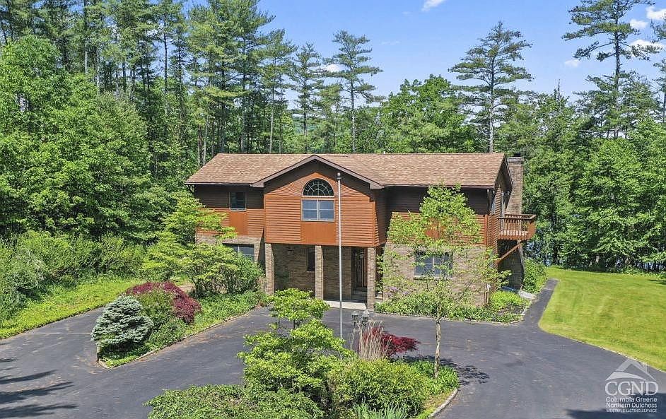 Completely private lakefront retreat awaits you! Well-built custom home has 220' of lakefront, gorgeous pond, & six acres of well-considered landscaping with low-maintenance specimen trees & perennials providing waves of interest throughout the seasons. Swim or kayak on the lake, entertain on the large deck, or play a game of bocce on the court. Inside there is space to spread out & entertain with lofted ceilings, 5 spacious bedrooms, 3 full baths, living room with stone fireplace, formal dining room, spacious kitchen with island, loft space, and partially finished basement. This one-owner home with smart design is turnkey but would make an excellent base for custom renovations. 5 to Catskill, 30 to skiing @ Windham & Hunter, 15 to Hudson, 30 to Albany, 2hrs NYC