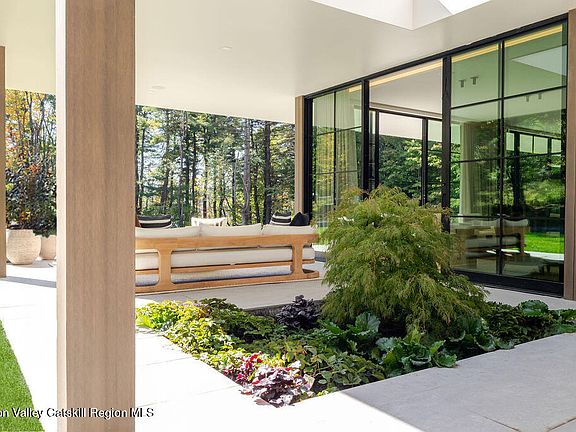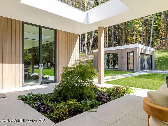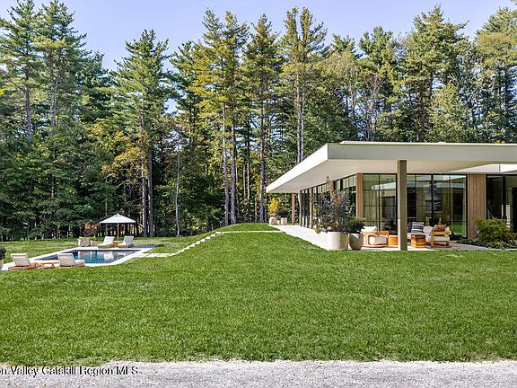 Located in the private, gated enclave of The Ridge at Copake Lake. This newly built modern glass home offers single-level living on 4 secluded acres. Designed for an indoor/outdoor lifestyle, the main level features 4 bedrooms, 3.5 bathrooms, and a great room with a custom millwork kitchen, large breakfast bar, and floor-to-ceiling glass for seamless connection to the outdoors.