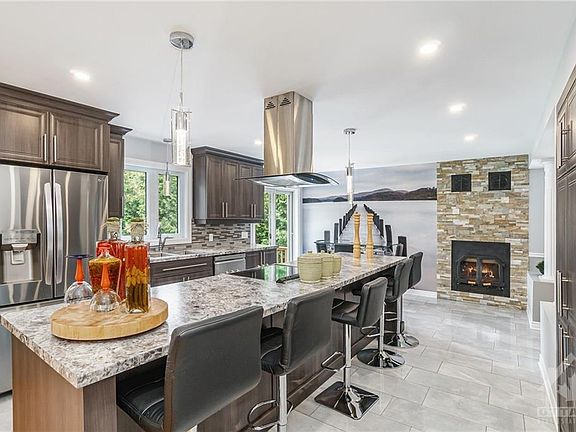 This gorgeous 4 bedroom all brick 2-storey is sure to impress the moment you arrive -from the interlock driveway to the grand foyer open to the 2nd level. The main floor features a gourmet designer kitchen with loads of cabinetry, center eat- at island & dining nook with wood fireplace & stone surround. Unwind in the spacious sunken living room with vaulted ceiling (open to the second level), gas fireplace & custom bar area! Formal dining room, office/4th bedrm & partial bath complete the main level. The second floor features 3 large bedrooms including the primary suite with walkin closet & 4pc ensuite bath. There's no shortage of space in this home with a rec room with bar area downstairs! Huge landscaped yard with mature hedges, deck & patio. Situated in a great family neighbourhood only steps away from parks, nearby schools, the arena & amenities!