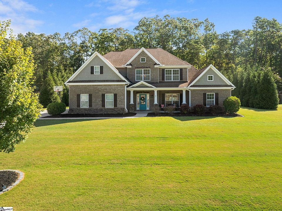Welcome to this beautifully appointed traditional home nestled in the highly desirable Harts Cove community of Simpsonville—where the home appraisal has already been completed for your convenience! Boasting over 3,200 square feet, this 5-bedroom, 3.5-bath residence sits on a private, half-acre+ lot and effortlessly combines classic charm with modern comfort. Designed with flexibility in mind, the home features two spacious primary suites—one on the main level and another upstairs—ideal for multi-generational living or hosting guests. Step through the soaring two-story foyer and into a thoughtfully crafted interior, complete with oversized bedrooms, elegant crown molding, recessed lighting, and abundant storage throughout. The heart of the home is an expansive main living area—perfect for both everyday comfort and entertaining. Just off this space, a large breakfast area offers plenty of room for casual dining, with great flow and natural light. At the front of the home, the original formal dining room—located just off the kitchen—has been thoughtfully converted into a home office, providing flexibility to suit your lifestyle. Whether used as a dedicated workspace, a formal dining space, or a flex room, it’s a valuable bonus that adapts to your needs. The gourmet kitchen is a chef’s dream, showcasing granite countertops, stainless steel appliances, and generous cabinetry. Outdoors, enjoy your own private retreat with a built-in fire pit, a relaxing hot tub (included with the home), and a wide driveway offering extra parking. A side-entry garage enhances curb appeal, while the peaceful setting and sought-after school zoning make this home as practical as it is beautiful. Move-in ready and filled with thoughtful upgrades, this exceptional property delivers luxury, comfort, and convenience in one of Simpsonville’s most coveted neighborhoods.