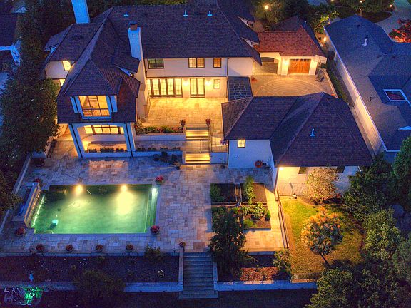 - Kitchen Island, Walk-In Closet(s), Pantry, Entrance Foyer, Eat-in Kitchen, Double Vanity, Crown Molding, Chandelier, Bookcases, Built-in Features, Beamed Ceilings, Butler's Pantry, Ceiling Fan(s), Elevator, High Ceilings, Recessed Lighting